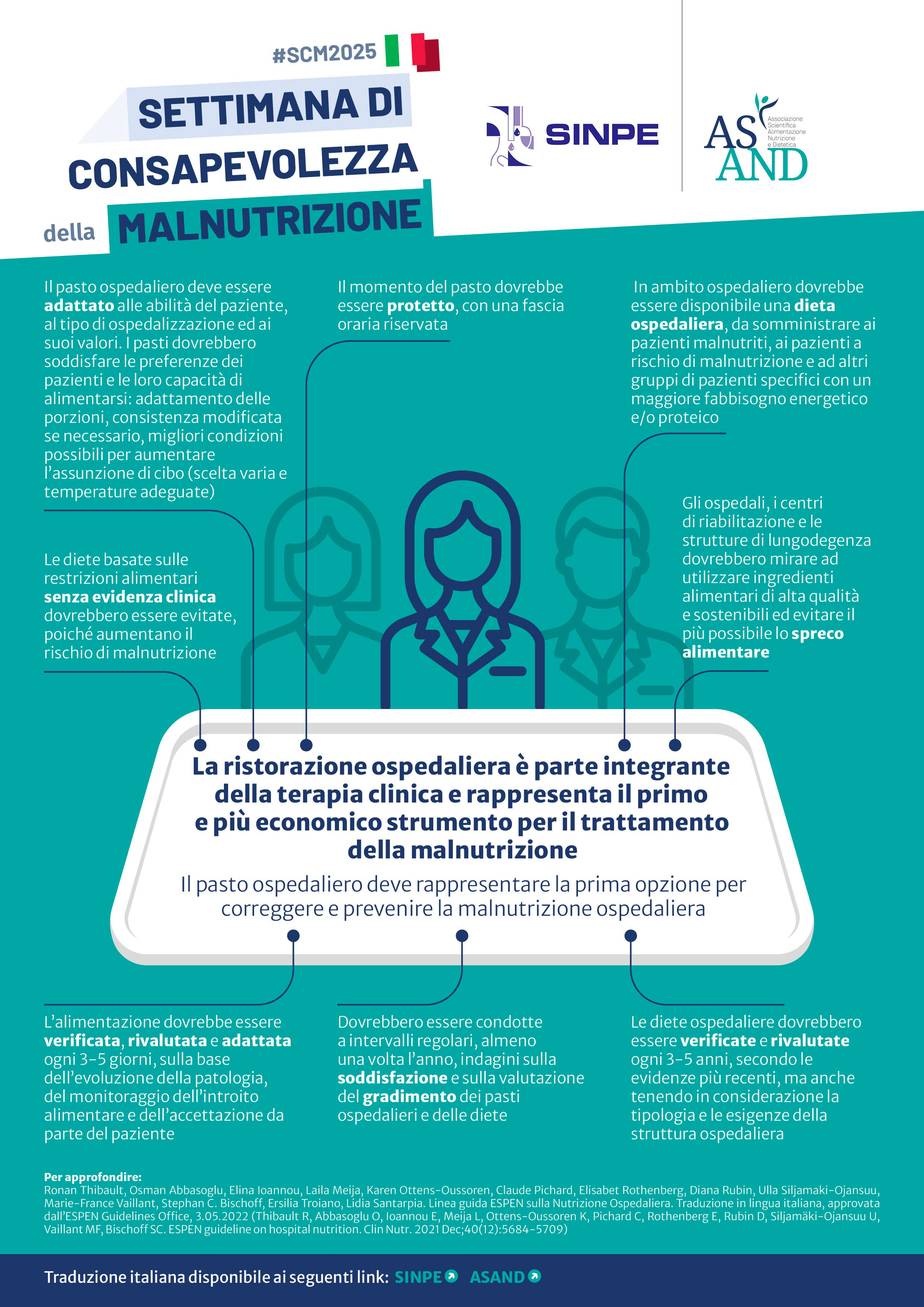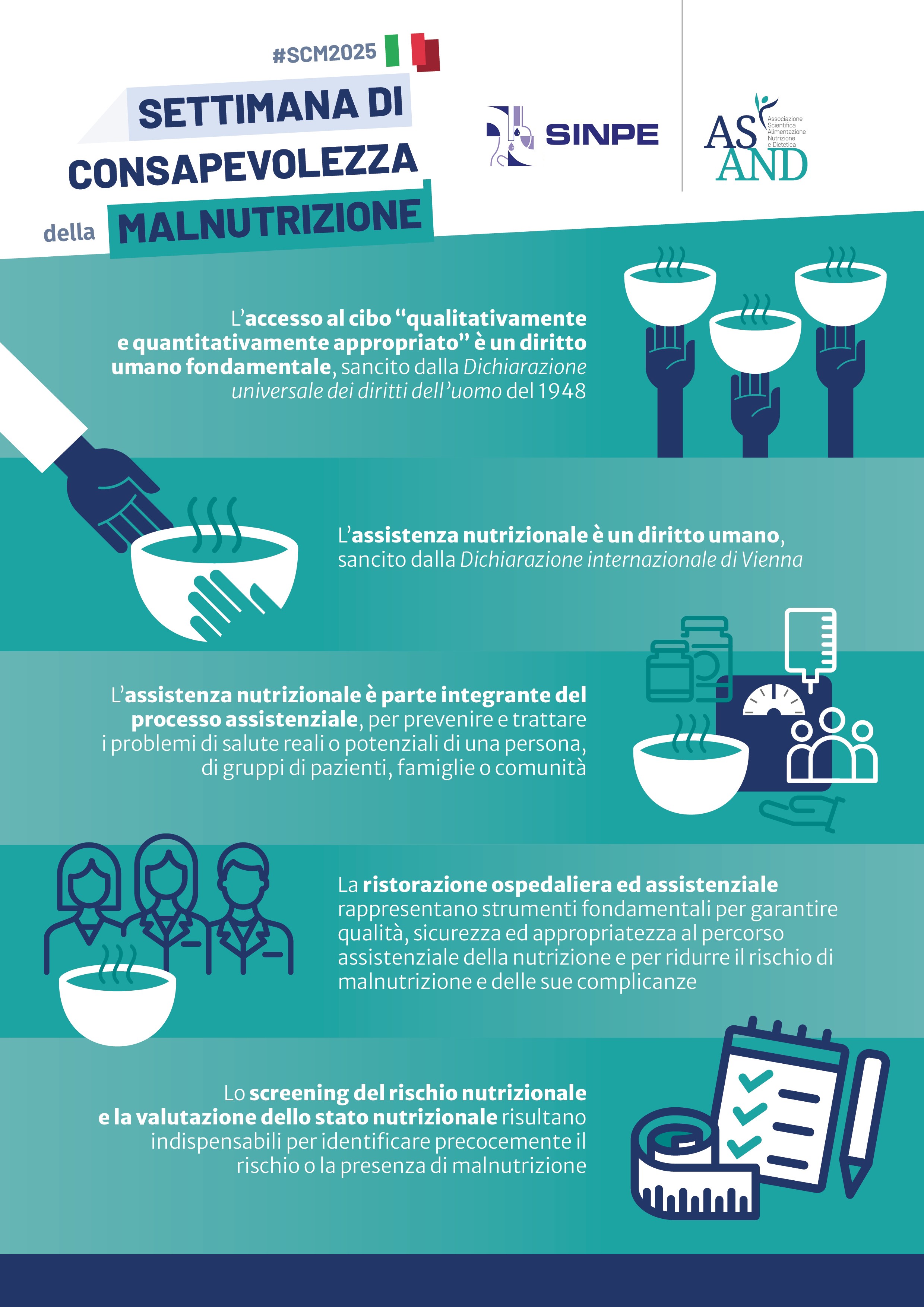 abbiamo il piacere di segnalarvi che da lunedì 3 novembre a venerdì 7 novembre si svolgerà la Settimana di Consapevolezza della Malnutrizione 2025, che anche quest'anno ci vede impegnati per promuovere il diritto di tutti i pazienti ad un'assistenza nutrizionale appropriata.